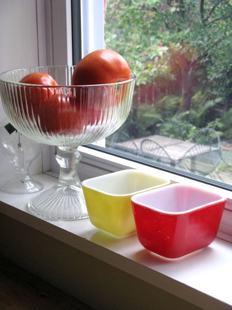 Another thing that makes me happy is my little Pyrex dish. I have no idea what they are intended for (mini meatloaf?).